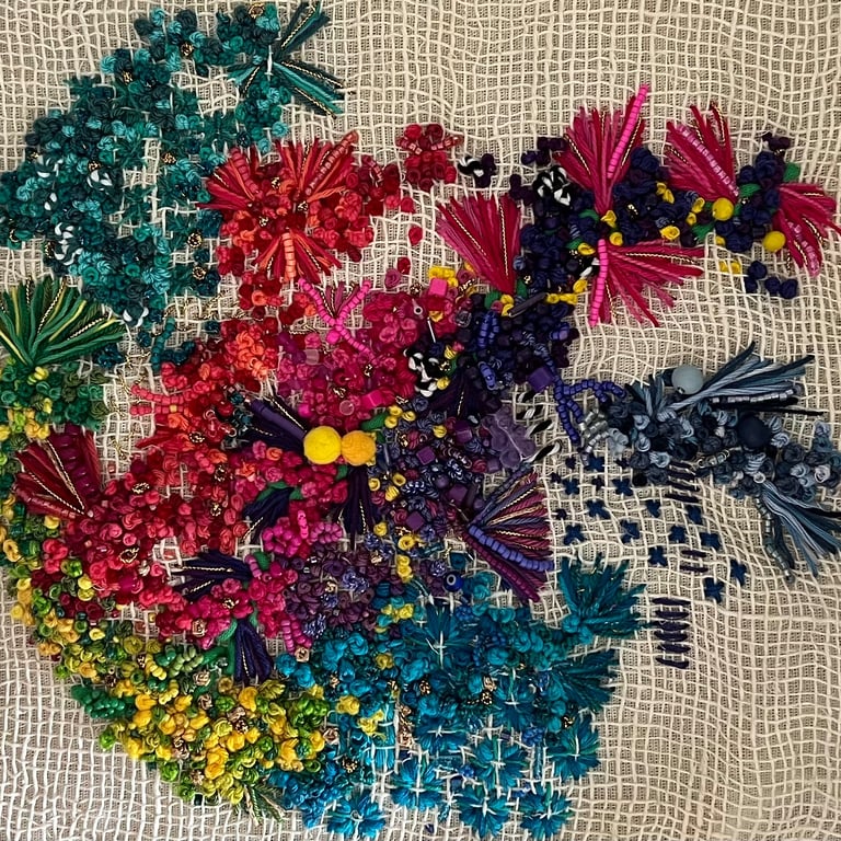 Crecimientos reúne obras que exploran la expansión orgánica del color y del gesto. Cada pieza se comporta como un microcosmos en movimiento: densidades que se abren, ritmos que fluyen, formas que se fragmentan para renacer.